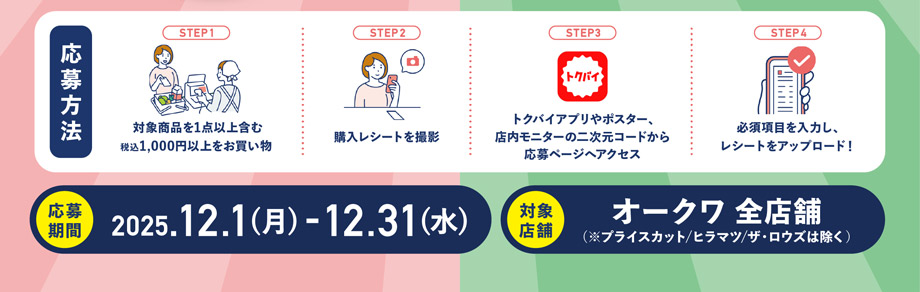 オークワオリジナル商品を買って当てよう!オーカードポイントプレゼントキャンペーン(有効期間:12/1から12/31まで)