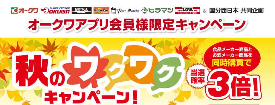 オークワアプリ限定「秋のワクワクキャンペーン オーカードポイント総額50万ポイントが当たる!」