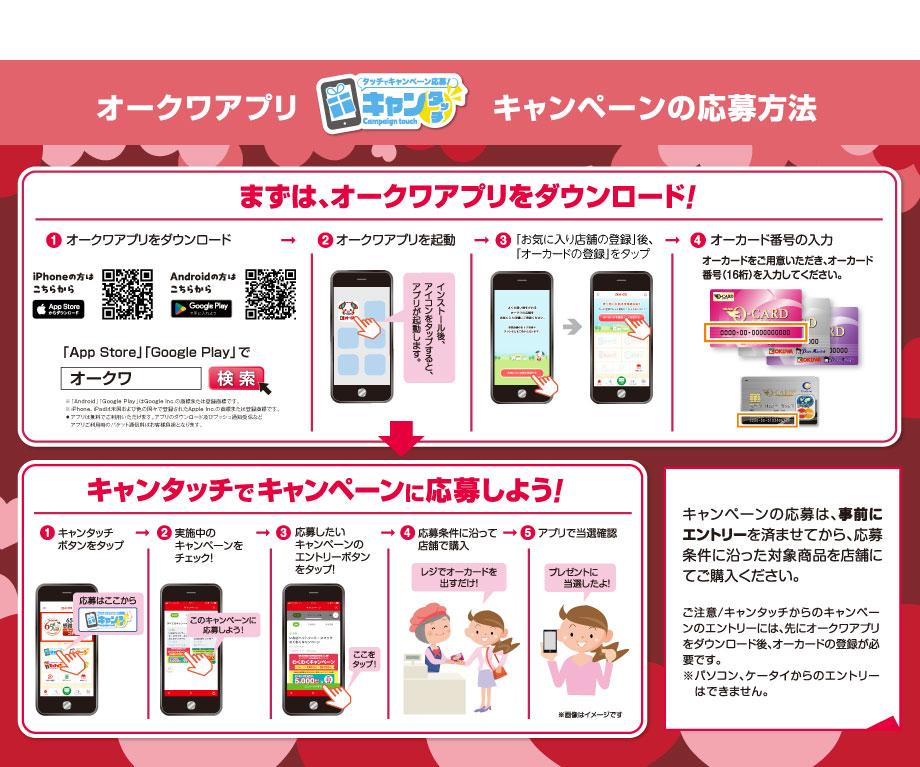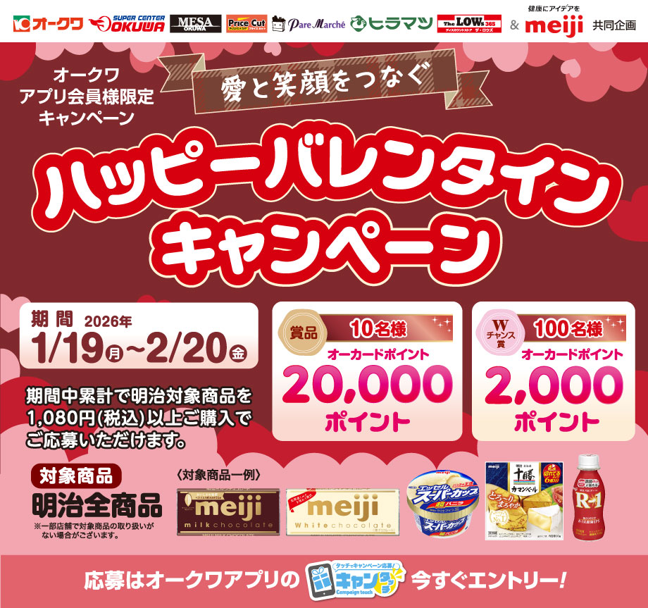オークワアプリ限定「明治共同企画 ハッピーバレンタインキャンペーン」(有効期間:1/19から2/20まで)