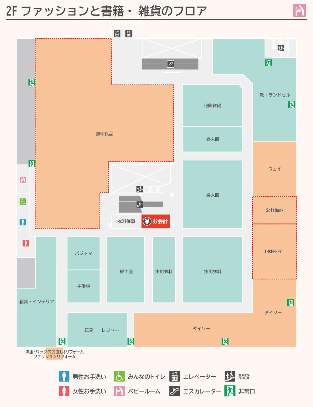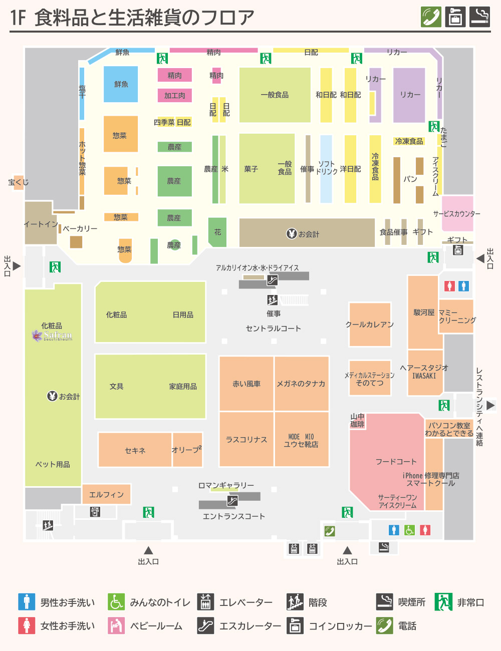 | 取扱い商品 | 食料品、酒類、ベーカリー、衣料品(婦人服、紳士服、子供服、服飾雑貨、肌着靴下、寝装品)、住居関連用品、100円ショップ |